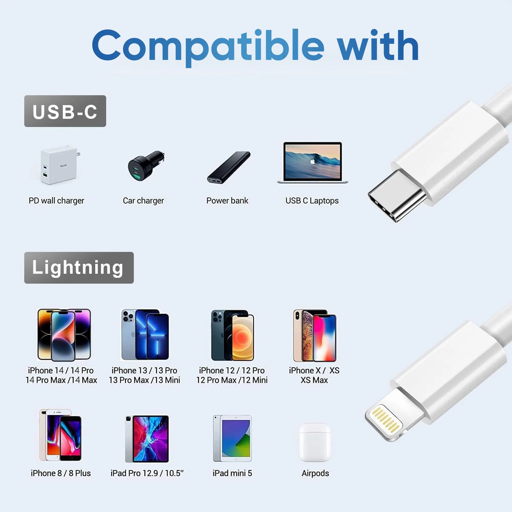 • USB-C to Lightning: Perfect for Apple devices with Lightning port